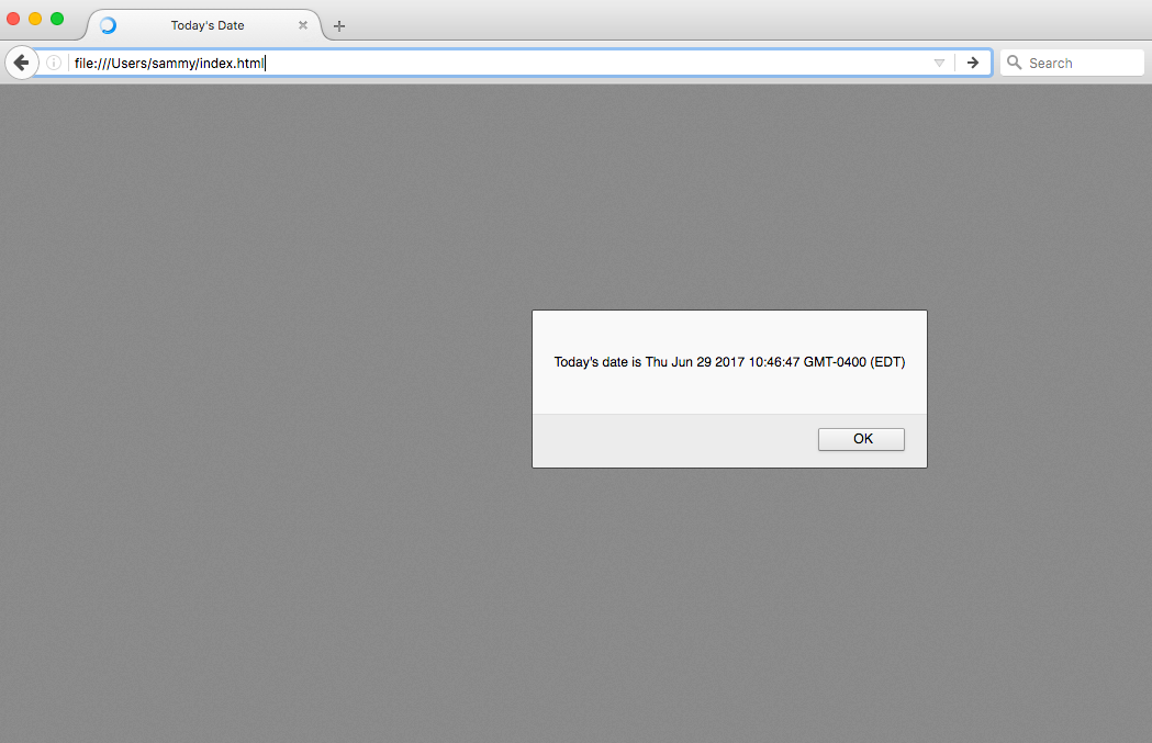 Right now, this file only contains HTML markup. Let’s say we would like to add the following JavaScript code to the document: