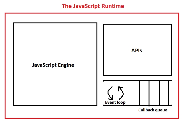 The APIs on the other hand is a set of tools that help JavaScript to do the stuff it cannot do by itself (I/O operations mainly). For example, the famous setTimeout() function is asynchronous and belongs to the Web APIs in the browser.